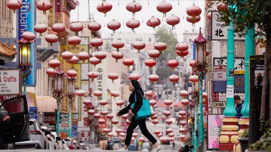 지난 18일 미국 캘리포니아주 샌프란시스코의 차이나타운 앞을 한 시민이 지나가고 있다. AP=연합뉴스 |