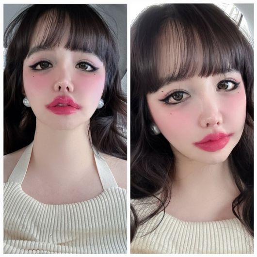 특히 눈에 띄는 것은 얼굴에 찍힌 세 개의 점. 박봄 특유의 뚜렷한 이목구비와 함께, 마치 꽃 세 송이가 얼굴에 피어난 듯한 느낌을 자아냈다. 커다란 눈망울과 또렷한 메이크업, 핑크빛 치크까지 더해져 ‘살아있는 인형’ 같은 매력을 완성했다.