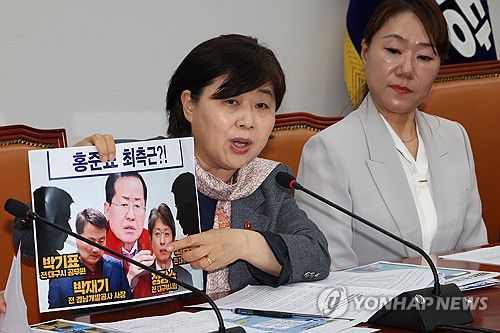 (서울=연합뉴스) 안정훈 기자 = 더불어민주당은 2022년 대구시장 후보 선출을 위한 국민의힘 당내 경선 당시 홍준표 캠프가 당원 명부를 입수해 불법 여론조사에 활용했다는 의혹을 21일 제기했다.