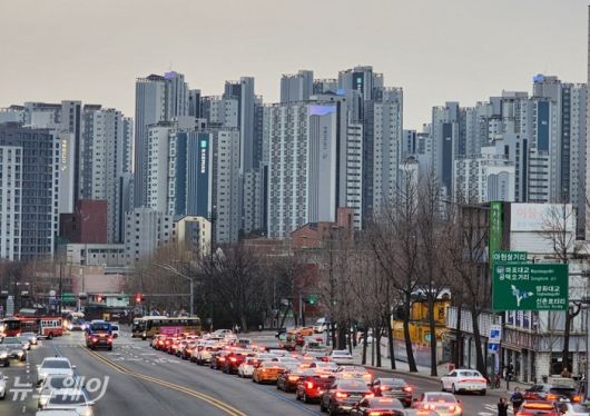 서울 아현삼거리에서 바라본 마래푸(마포래미안푸르지오) 모습. 사진=권한일 기자 |