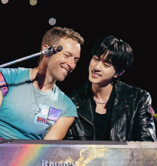 (서울=뉴스1) 안태현 기자 = 그룹 방탄소년단의 진이 다시 한번 밴드 콜드플레이와의 특급 우정을 과시했다.