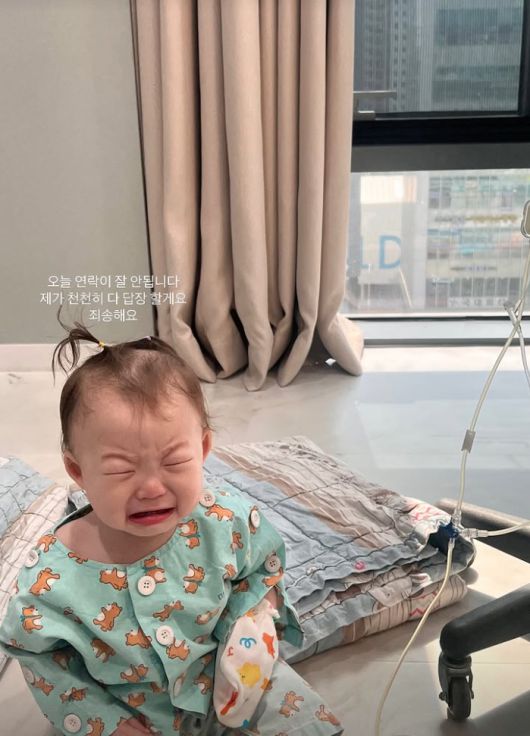 공개된 사진 속에는 병원에 입원해 링거를 맞으며 눈물을 보이고 있는 둘째 딸의 모습이 담겼다.