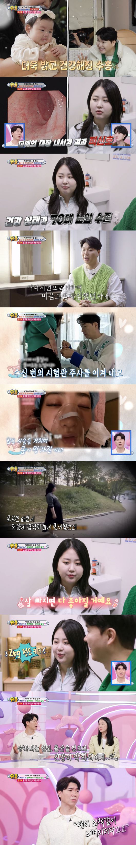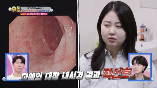 전문의는 "십이지장과 대장에 염증이 있다"며 "간수치는 47/58이다. 지난 검사보다 4배나 올랐다. 거의 70대 할머니 수준"이라고 말해 부부를 놀라게 했다.