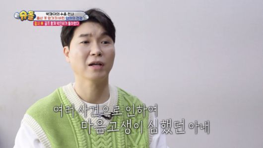 박수홍은 "내가 고생시켜서 그렇다. 그 전에 여러 사건으로 인해 마음 고생이 심했고 육체적으로 변화가 많았다"며 "나는 안 좋다가 좋아졌고, 아내는 임신, 출산을 겪으며 건강이 악화되어서 괜히 나만 챙김을 받아서 그런가 죄책감이 느껴지더라"며 미안한 마음을 전했다.