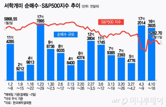 서학개미 순매수·S&P500지수 추이/그래픽=윤선정 |