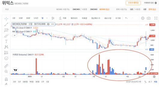 가상자산 위믹스(WEMIX)는 3월 4일 거래유의종목으로 지정된 이후 오히려 거래량이 늘었다. |
