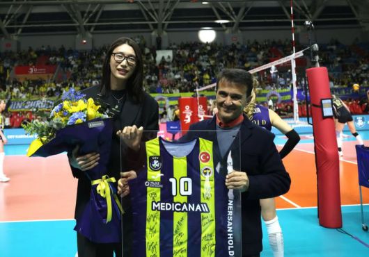 페네르바체는 21일(한국 시간) 튀르키예 이스탄불에서 열린 튀르키예리그 바키프방크와의 챔피언결정전 2차전에 앞서 김연경에게 기념 유니폼과 꽃다발 등을 전달했다.