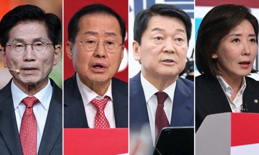 국민의힘 김문수 대선 경선 후보(왼쪽부터), 홍준표 후보, 안철수 후보, 나경원 후보. 연합뉴스 |