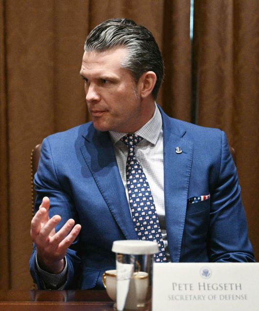 지난 10일(현지시간) 백악관에서 열린 국무회의에 참석한 피트 헤그세스 미 국방장관. AFP연합뉴스 |