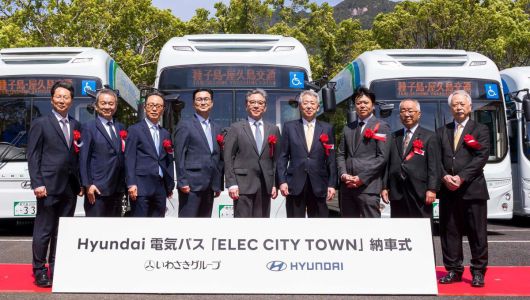 현대차는 21일 일본 야쿠시마에 있는 이와사키 호텔에서 운수·관광 서비스 기업 이와사키그룹과 ‘일렉시티 타운 전달식’을 개최했다. 현대차는 이와사키그룹이 운영하는 다네가시마·야쿠시마 교통 주식회사에 무공해 전기버스 ‘일렉시티 타운’ 5대를 공급했다.