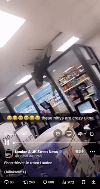 20일(현지시각) 영국 더선에 따르면, 최근 영국의 테스코 매장에서 벌어진 절도 사건 영상이 소셜네트워크서비스(SNS) X(구 트위터)를 통해 공개됐다.