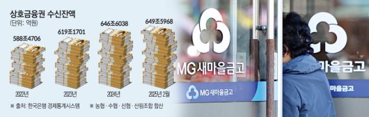 상호금융권에 몰린 자금은 역대 최고치를 기록했다. 한국은행 경제통계시스템에 따르면 올해 2월 기준 농협·수협·신협·산림조합 등 상호금융권의 수신 잔액은 649조5968억 원으로 전년 동기 대비 26조8716억 원 증가했다.