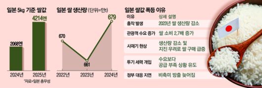 다만 △기후 악화에 따른 생산 감소 △정부의 비축미 방출 지연이 맞물리면서 쌀값 상승에 힘을 보탰다. 실제로 일본은 이상고온으로 인해 작황이 부진해 2023년 쌀 생산량이 1년 전보다 9만t이 줄어든 661만t을 기록했다.