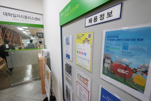 올해 20대 후반 취업자가 약 12년 만에 가장 큰 폭으로 감소한 것으로 나타났다. 사진은 지난 14일 촬영된 서울 시내 한 대학교에 설치된 취업정보 게시판. 연합뉴스 |