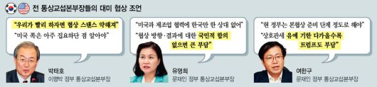 이런 인식은 세계를 상대로 ‘관세 전쟁’을 벌이는 도널드 트럼프 미국 행정부가 한국과 일본 등 동맹국을 상대로 급하게 성과를 내려는 상황에 잘못 휘말리면 국익을 해치고 국내적 논란이 커질 수 있다는 판단 때문이다. 2012년 한-미 자유무역협정(FTA) 협상 마무리와 발효를 관장한 박태호 전 본부장(법무법인 광장 국제통상연구원장)도 유사한 의견을 내놨다. 박 전 본부장은 “현 정부에서 협상해 결과가 나오더라도 이행 부담은 다음 정부가 져야 한다”며 “우리가 빨리 하자고 하면 오히려 우리의 협상 스탠스가 약해진다”고 지적했다. 2018년 트럼프 행정부 1기 때 한-미 자유무역협정 재협상을 이끈 유명희 전 본부장(서울대 국제대학원 객원교수)도 “협상 방향, 결과, 내용에 대한 국민적 컨센서스(합의)가 없으면 협상하는 사람들은 훨씬 더 큰 부담을 지게 된다. 결과에 대해서도 대내 설득과 국회 비준 등에 엄청난 에너지를 써야 한다”며 ‘대행 체제’의 한계를 짚었다.