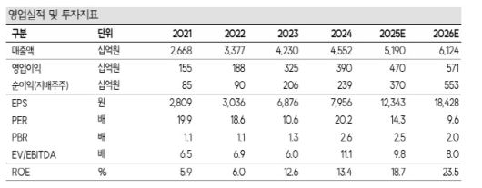연간 실적 전망은 긍정적이다. 매출액 5조1900억원, 영업이익 4700억원으로, 전년 대비 각각 14.0%, 20.7% 증가할 것으로 내다봤다. 영업이익 추정치는 기존 대비 4.7% 상향 조정됐다.
