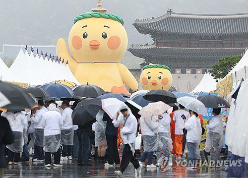 서울 종로구 광화문광장에서 시민들이 우산을 쓰고 이동하고 있다. [연합뉴스 자료사진]