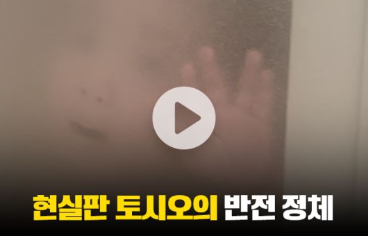 그 순간 불투명 유리로 된 욕실 문 너머에 있던 누군가가 문 가까이 얼굴을 들이밀었고, 아리스 씨는 깜짝 놀랐습니다. 공포영화 '주온'에 나오는 귀신 토시오를 떠올리게 만드는 모습이었기 때문.