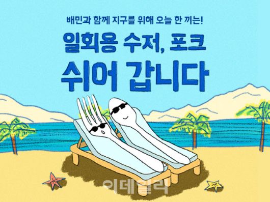배민은 지구의 날을 맞아 28일까지 일회용 수저·포크 안 받기 옵션을 선택하고 주문한 고객 중 3000명을 추첨해 음식배달 주문 시 사용할 수 있는 5000원 할인 쿠폰을 제공한다.