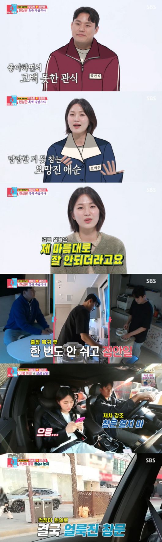 지난 21일 방송한 SBS '동상이몽2-너는 내 운명'(이하 '동상이몽2')에서 '결혼 5년 차' 박승희 엄준태 부부는 '폭싹 속았수다'의 애순-관식 커플의 현실판을 연상케하는 일상으로 눈길을 끌었다. 연애 4개월 만에 상견례 후 결혼까지 초스피드로 했다는 前 스케이트 국가대표이자, SBS 간판 예능 '골 때리는 그녀들'에 출연 중인 박승희는 "제가 먼저 고백했다. 좋아하는데 기다리는 게 너무 답답하더라"며 "남편은 '폭싹 속았수다' 관식이 같다"고 소개했다.