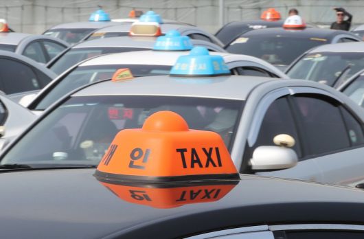 제주시의 한 차고지에 주차돼 있는 택시들. 뉴스1 |