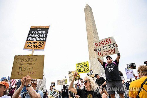 미국 워싱턴DC에서 열린 도널드 트럼프 대통령 반대 시위[AFP 연합뉴스 자료사진]