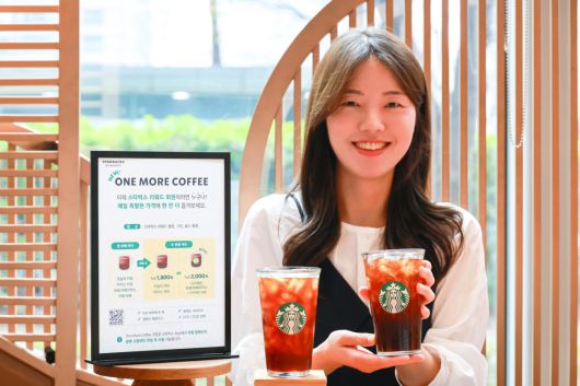 스타벅스코리아는 2월 스타벅스 리워드 골드 회원을 위한 혜택으로 새롭게 선보인 ‘원 모어 커피(One More Coffee)’를 23일부터 정식 프로그램으로 운영한다고 22일 밝혔다. 원 모어 커피 이용 대상 고객과 음료를 확대하는 등 고객 편의도 높인다.