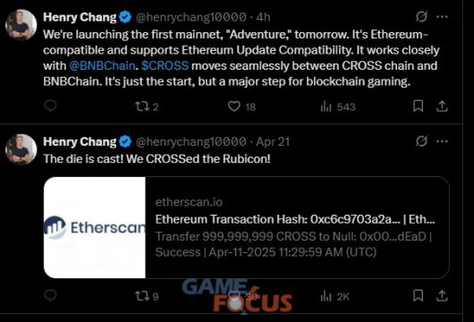 한편 장현국 대표는 기존 크로쓰 토큰이 이더리움 네트워크에서 전량 소각 처리됐다고 밝혔다. 그가 21일 X에 공유한 이더스캔 링크에 따르면, 1월 발행된 크로쓰 토큰 10억개가 전량 소각 주소로 이동한 것이 확인된다.