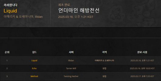 한편, 22일 기준 언더마인 해방전선 명예의 전당에 등록된 팀은 119개다. 한국 서버 팀은 총 4팀이 이름을 올린 상태다.