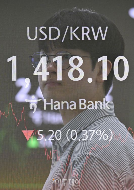 원·달러 환율이 미국 달러화 약세 영향으로 1420원선을 하회한 21일 서울 중구 하나은행 딜링룸 전광판에 원·달러 환율이 표시돼 있다. 이날 원·달러 환율은 종가 기준 1417.90원을 나타냈다.(다중노출 촬영) 조현호 기자 hyunho@ |