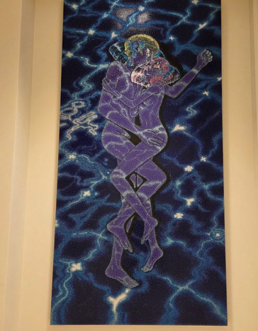 해당 작품은 남성과 여성이 서로를 껴안고 있는 독특하고 몽환적인 분위기의 이미지로, 기안84 특유의 화풍이 고스란히 드러난다. 특히 방탄소년단과 팬덤 아미(ARMY)를 상징하는 보라색 톤이 주를 이루며, 팬들의 감성을 자극했다.
