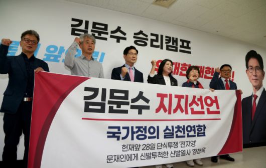 ▲ 22일 서울 여의도 대하빌딩 김문수 승리캠프 사무실에서 국가정의 실천연합이 연 김문수 지지선언 기자회견. ⓒ김문수 승리캠프 |