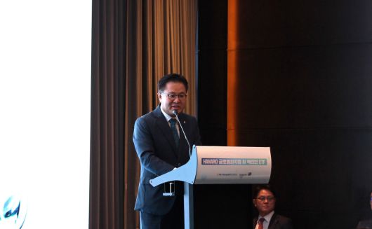 길정섭 NH아문디자산운용 대표가 22일 서울 여의도에서 열린 HANARO 글로벌피지컬AI 액티브 ETF 기자간담회에서 인사말을 하고 있다. |