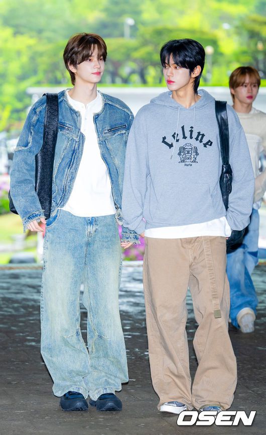 [OSEN=민경훈 기자] 22일 오후 서울 영등포구 여의도 KBS 신관에서 KBS 2TV '더 시즌즈 - 박보검의 칸타빌레' 녹화가 진행됐다. 이 프로그램에 참석하기 위해 그룹 투어스(TWS)가 출근했다. 그룹 투어스 신유와 도훈이 출근길에 취재진을 향해 포즈를 취하고 있다. 2025.04.22 / rumi@osen.co.kr