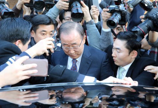 2017년 2월 1일 당시 반기문 전 유엔사문총장이 대선 불출마를 선언하고 국회를 떠나고 있다. 중앙포토 |