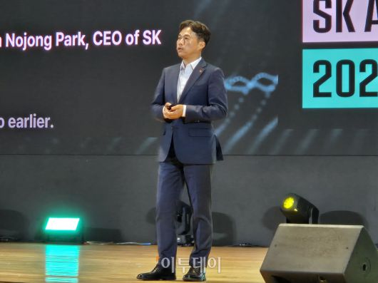 곽노정 SK하이닉스 사장이 4일 서울 삼성동 코엑스에서 열린 ‘SK AI 서밋(Summit) 2024’에서 ‘차세대 AI 메모리의 새로운 여정, 하드웨어를 넘어 일상으로'를 주제로 한 기조 연설을 하고 있다. |