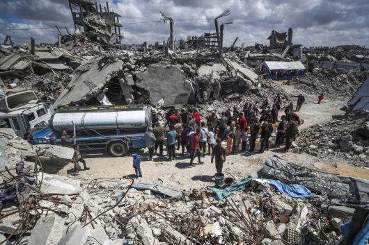 가자지구 휴전 협상을 중재 중인 이집트와 카타르는 5~7년 휴전하는 새로운 구상을 제시했다고 BBC가 21일(현지 시간) 보도했다. 사진은 지난 10일 식수난이 심각한 가자지구 북부 자발리아 난민캠프에서 팔레스타인 난민들이 급수 트럭에서 물을 받고 있는 모습. 2025.04.22 자발리아=신화/뉴시스 |
