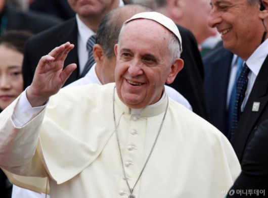 [서울=뉴시스] 프란치스코 교황이 21일 선종했다고 AP통신이 보도했다. 향년 88세. AP통신에 따르면 교황청은 "프란치스코 교황이 오늘 오전 7시35분께 자택에서 선종했다"고 밝혔다. 프란치스코 교황은 최근 폐렴으로 입원했다가 퇴원해 활동을 재개하고 있었다. 사진은 프란치스코 교황이 지난 2014년 8월 14일 오전 경기도 성남 서울공항을 통해 입국, 영접 나온 인사들에게 손을 흔들며 인사하는 모습. (사진=뉴시스DB) 2025.04.21. photo@newsis.com /사진= |