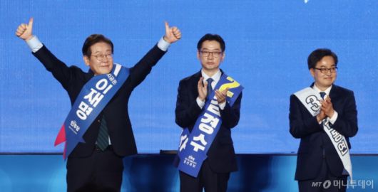 민주당은 오는 26~27일엔 호남권(김대중컨벤션센터), 수도권·강원·제주(킨텍스)의 지역경선 결과를 순차적으로 공개한다. 나머지 50% 비중으로 반영되는 일반 국민 여론조사를 합산한 최종 결과는 27일 발표될 전망이다. 국민 여론조사는 오는 21~27일 중 무작위로 이틀을 선정해 진행된다.