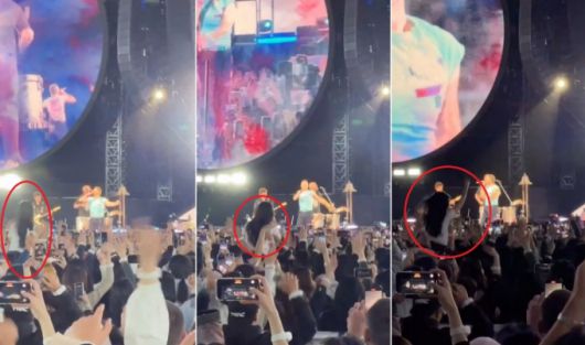 콜드플레이 내한 공연에 한 여성 관객이 목말을 탄 채 콘서트를 즐기는 모습이 포착됐다. /사진=X 갈무리 |