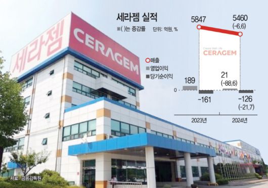 이와 관련, 세라젬은 내수부진 등의 여파로 지난해 실적이 다소 부진했다. 지난해 연결 기준 매출은 5460억원으로 전년 5847억원 대비 6.6% 감소했다. 같은 기간 영업이익은 21억원으로 전년 189억원에서 88.6% 감소했다. 순손실도 126억원을 기록하며 2년 연속 적자 기조를 이어갔다.