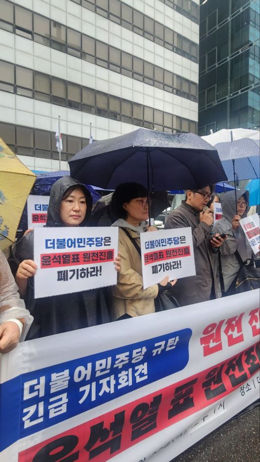 이영경 탈핵시민행동 집행위원은 “윤석열 핵폭주를 비판하고 재생에너지 중심의 에너지정책을 짜야 한다던 민주당은 어디로 갔느냐”며 “민주당은 윤석열과 무엇이 다른지 정확히 답하라”고 말했다.