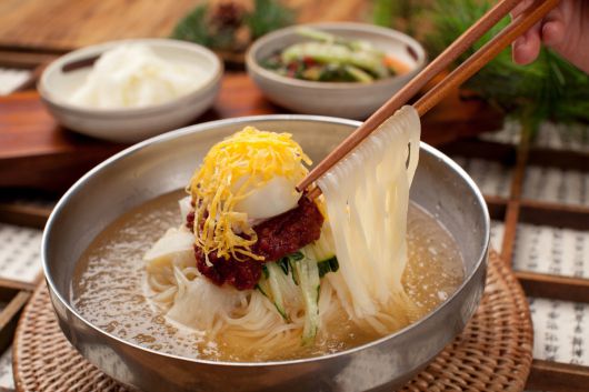 물 비빔밀면은 물 밀면, 비빔밀면을 동시에 먹고 싶을 때 두 가지 모두 즐길 수 있는 최고의 선택이다. 뼛속까지 시원해지는 육수와 매콤달콤한 양념장의 조화가 일품인 밀면은 주문 즉시 뽑아주는 생면으로 내놓는다.