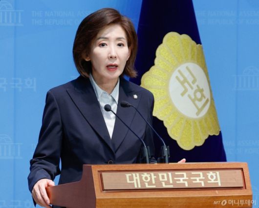 나경원 국민의힘 대선 경선 후보가 22일 오후 서울 여의도 국회 소통관에서 5대 초광역 메가시티, 3대 글로벌 혁신허브 내용을 담은 부울경 공약을 발표하고 있다./사진=뉴스1 |