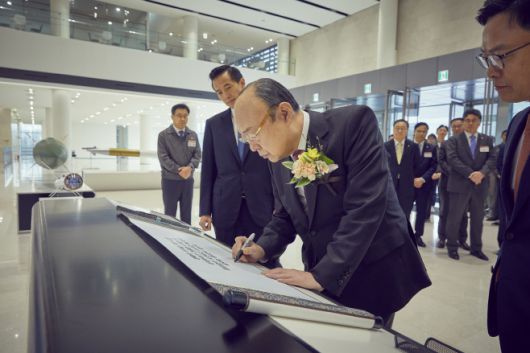 김승연 회장과 김동관 부회장이 지난해 한화에어로스페이스 대전 R&D캠퍼스를 방문한 모습./제공=한화 |
