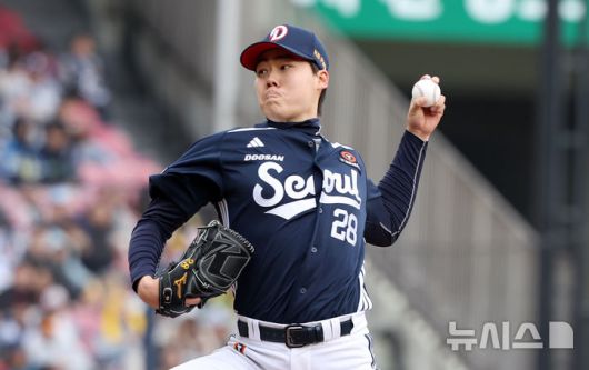 [서울=뉴시스] 김선웅 기자 = 지난 13일 서울 송파구 잠실야구장에서 열린 2025 프로야구 두산 베어스와 LG 트윈스의 경기, 두산 선발투수 최승용이 역투하고 있다. 2025.04.13. mangusta@newsis.com