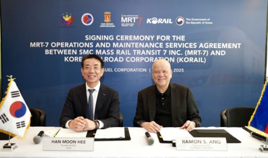 아시아투데이 김민환 기자 = 한국철도공사(코레일)는 2026년 개통하는 필리핀 도시철도 마닐라메트로 7호선(MRT-7) 운영?유지보수(O&M) 사업 수주 계약을 체결했다고 22일 밝혔다.