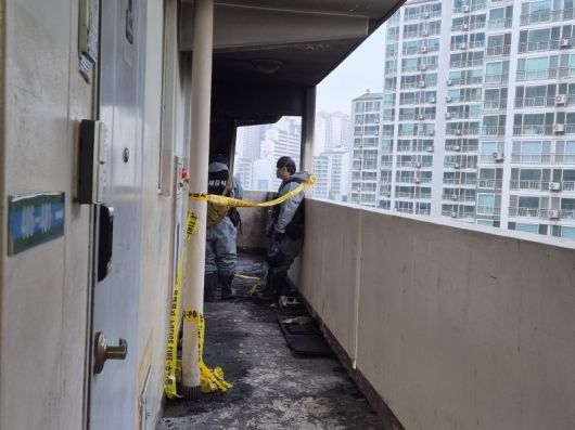 이 아파트에서는 전날 오전 8시 17분께 불이 나 60대 남성 A씨가 숨지고 6명이 다치는 사고가 발생했다. 특히 불이 난 4층에 거주하던 70~80대 여성 2명은 전신화상을 입고 4층에서 1층으로 추락해 병원으로 이송됐다. 경찰은 사망자와 방화 용의자를 동일인으로 판단한다. 경찰은 A씨가 농약살포기로 추정되는 도구에 기름을 넣고 자신의 주택과 인근 아파트에 불은 지른 것으로 보고 있다.