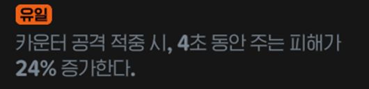 카운터 공격 적중 시 4초 간 공격력이 24% 증가한다. 대부분 카운터 공격이 있기 때문에 조건 만족시 꽤 높은 공증 효율을 볼 수 있다.
