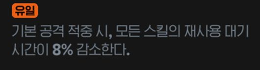 평타를 자주 쓰면서도 쿨타임 감소가 필요한 수도사나 빙결술사 등의 직업에게는 매우 필수적인 룬이다. 엠블렘 전설 룬 중 모든 스킬의 재사용 대시시간이 18% 감소하는 '지혜로움'이 있을 경우 우선순위가 조금은 내려간다.